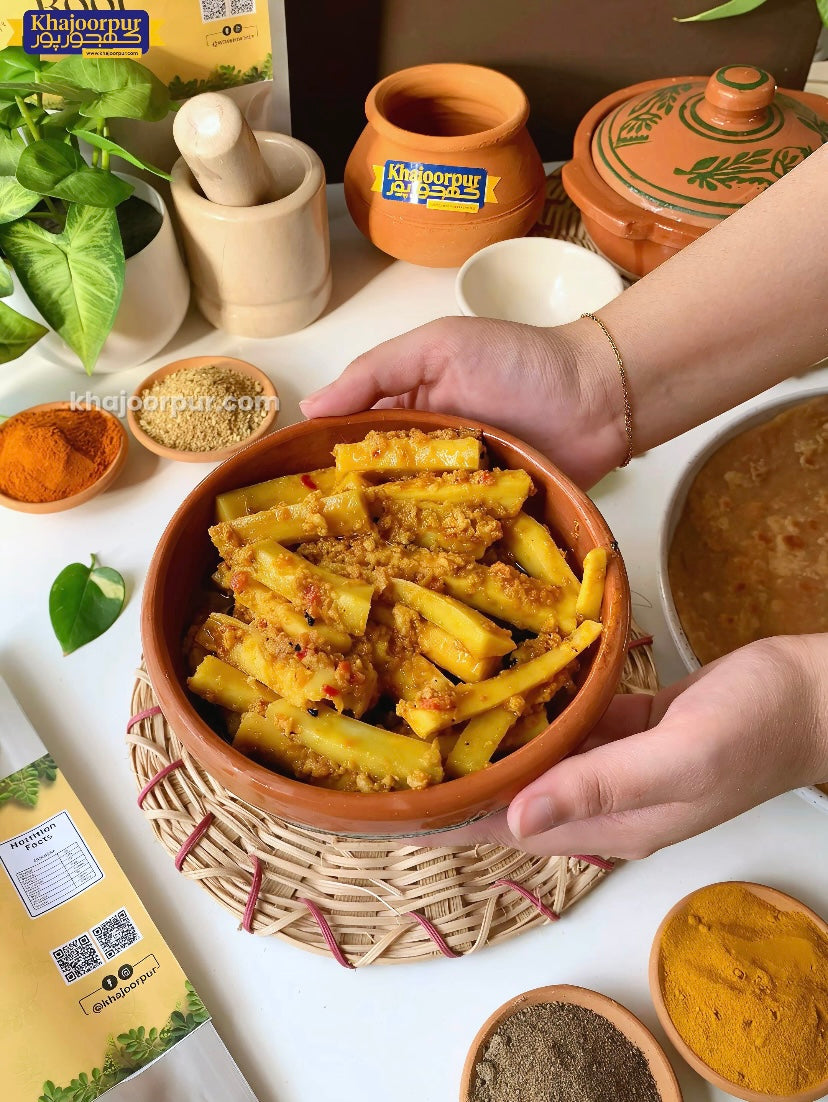 Made from fresh suhnjna roots, blended with premium spices and cold-pressed mustard oil. A bold, earthy, nutritious pickle that boosts digestion, strengthens immunity, and adds a unique zing to your meals.