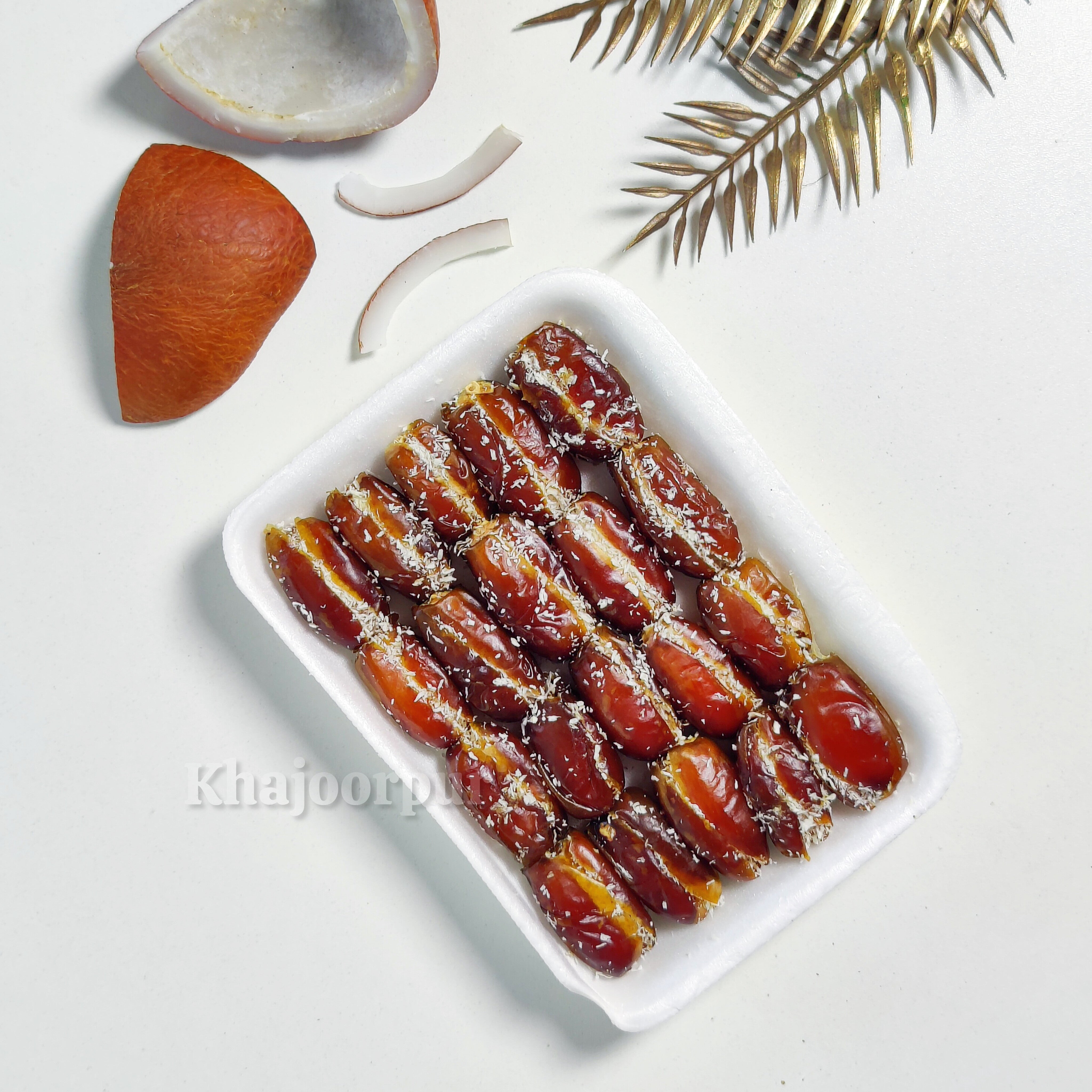 Experience the tropical twist of our Coconut Khajoor: premium Khairpur dates filled with delicate, lightly sweetened shredded coconut. Each bite gives you the perfect harmony of chewy date and creamy coconut texture.